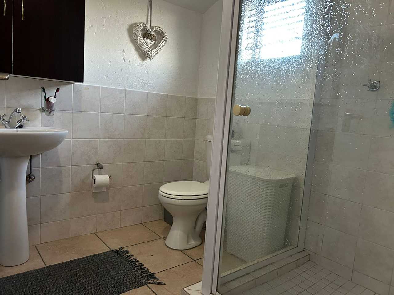 Spacious shower toilet and basin
